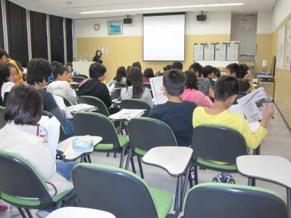 工場の中では新聞の作られる行程を見学したり,工場内の作業が