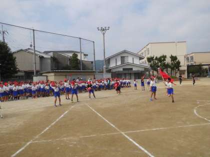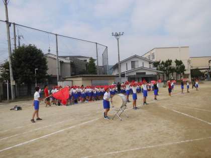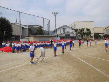 赤組の応援練習の様子です。応援団を中心にした各色の応援合戦。本番もぜひ楽しみにしておいてください。