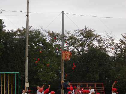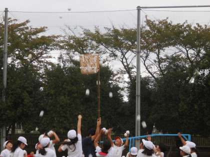 エントリー種目は玉入れの練習です。先日の綱引きの練習は赤組が勝ちましたが,今日の玉入れは白組が勝利。本番はどちらの色が勝利するのでしょうか。