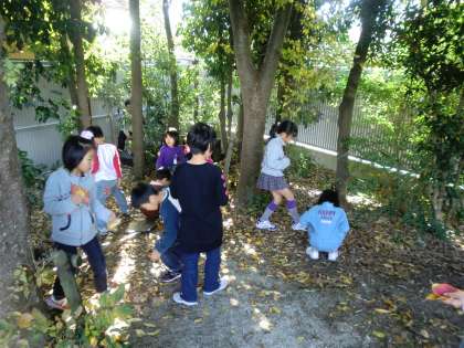 葉っぱが色づき、木の実が落ち、校内でも秋を感じられるようになりました。