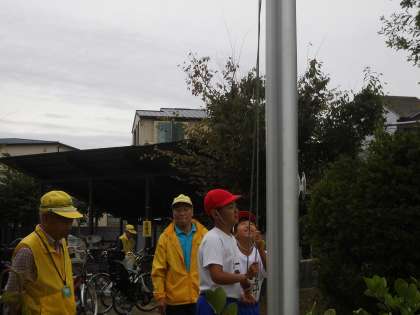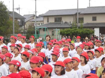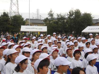 校歌・運動会の歌をみんなで歌いました。運動場にみんなの元気な声が響きました。