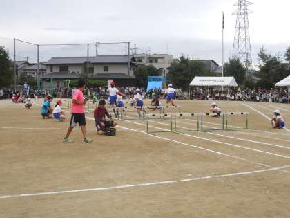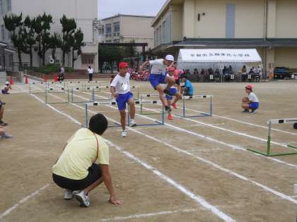 5・6年生は,100m走にハードル走,組体操に取り組みました。ハードル走は,自分にあったインターバルで,リズミカルにハードルをまたぎこしていきます。