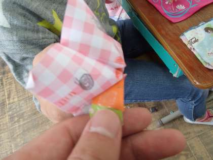 と手渡されたのは,ニンジンでした。もちろん本物ではなく,折り紙で作ったニンジンです。傍らから出てきたのは,近頃子どもたちの間で流行っている,くちばしの形をした折り紙です。教師が子どもの頃からあって,当時は「パックンチョ」などと呼んで友達と遊んでいました。時代は変われども折り紙は変わらないな,と思っていたのですが,