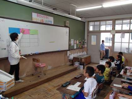 計算タイムには日下部先生と「大きな数」の復習です。反復練習がポイントです。