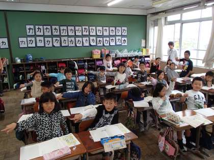 学年でクラスごとに漢字の指書きをしたり,発表会の歌を練習したりしています。チームワークを高めて頑張ります。
