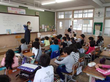 図書ボランティアさんの読み聞かせから一日がスタート。「解決!トイレ侍」「キスはまほう」などの本を読んで頂きました。みんなで一緒に投げキッスをしてみると,何とも言えない気分に。「寝ているときにされるで!」という愛されているご家庭もあり,微笑ましく眺めていました。