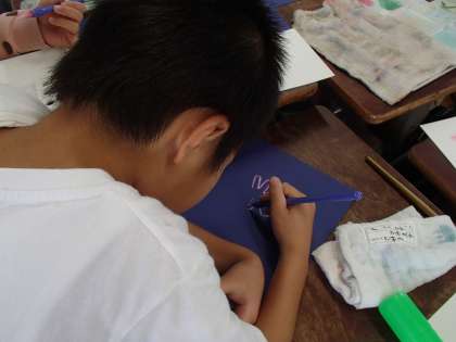 5・6校時の図画工作科では,濱本先生から「コスモスの絵」の描き方を習いました。早速筆遣いを工夫して,画用紙に描いている姿は,集中した立派なものでした。