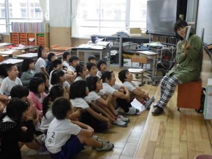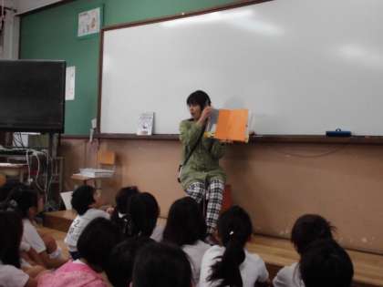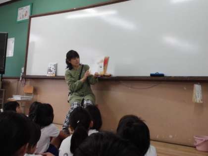 2年生の教室では,机といすを後ろに下げて,読み聞かせをしてくださる方の前で楽しませてもらいました。うれしそうに聞かせてもらう2年生たち。本に親しむよい時間になりました。