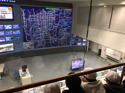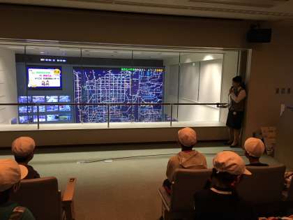 交通管制センターも見学させてもらいました。教科書で学習したことと照らし合わせながら,みんなで見学しています。