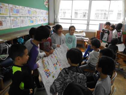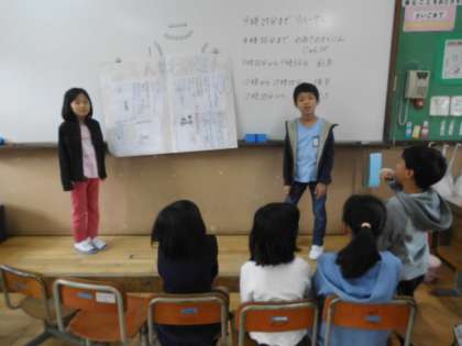 2年生は生活科で校区のことを調べてきましたが,今日はグループで調べてまとめてきたことの発表会をしました。お家の方にも来ていただき,みんなしっかりと発表していました。