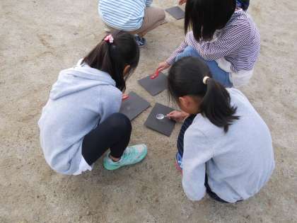 理科で,虫眼鏡を使って太陽の光を集める実験をしました。が,太陽が雲に隠れてしまい,うまく実験できません。また,次回,天気のよい日に実験ですね。