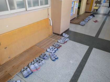 今日は3年生の視力検査。保健室の前で上靴をそろえて脱いで,検査を受けていました。どの学年も,意識して履き物をそろえるようにしています。