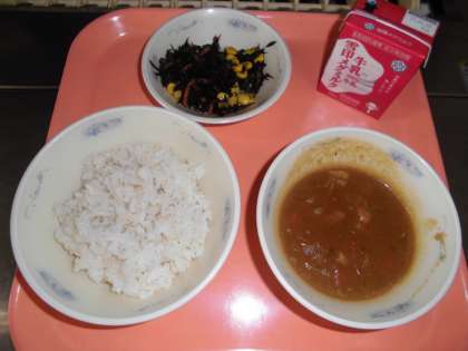 麦ごはん・牛乳・チキンカレー・ひじきのソテー