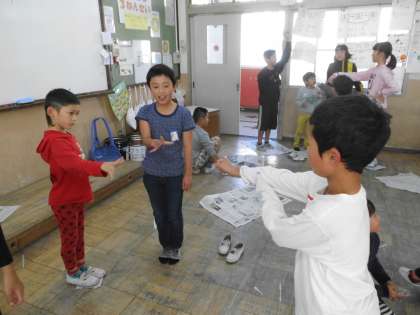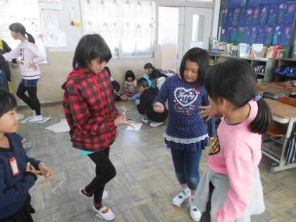 教室では,新聞紙を使ったゲームやトランプなどをして楽しんでいました。6年生が下級生のことをあたたかく見守ってくれたおかげで,どのグループも楽しい時間を過ごすことができました。