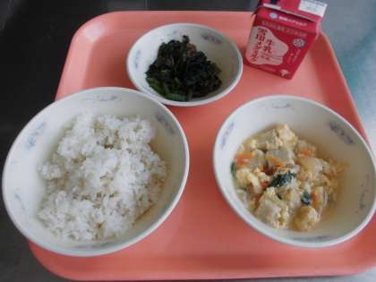 麦ごはん・牛乳・高野どうふの卵とじ・ほうれん草のおかか煮