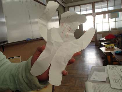 教師が教室に持っていったダンボール箱を,早速工作の材料にする3年生の子どもたち。何を作るのかと思いきや,箱を開けてとせがみます。開けてみると,中には,