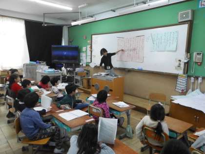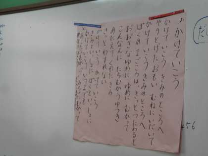 1組と2組合同で学習発表会の練習です。今日は歌の練習をしました。1年生らしく,元気な歌声を響かせてくれることだと思います。本番に向けて頑張っていきましょう。