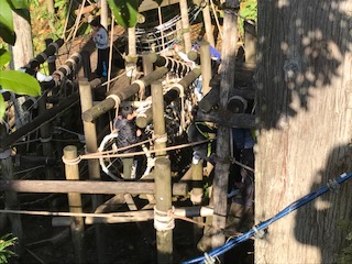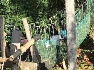 2組は、冒険の森で、アスレチックに挑戦です。安全についての確認をしたあと、班でまとまって活動しています。