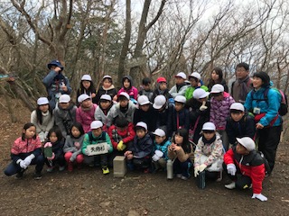 ついに頂上に到着しました。今日のめあて『挑戦』を半分達成しました。全員元気です。
