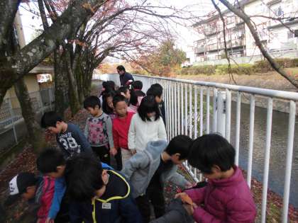 生活科の学習で,有栖川に秋見つけに出かけました。春にも観察しましたが,季節が変わって有栖川の景色もどう変化したのか,違いを感じながら散策しました。