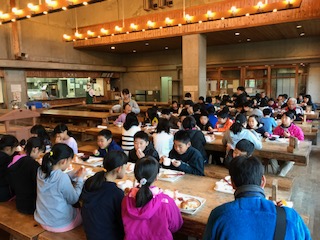 今朝も快晴です。朝のつどいの後、朝食を仲良くいただいています。4日間、今のところ、体調を崩す子もなく、元気に過ごしています。