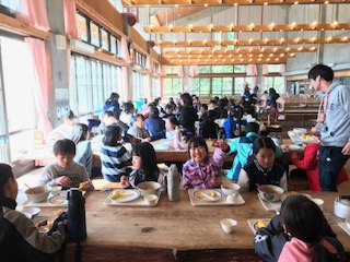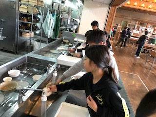 山の家最後の昼食です。後片付けも手際よくなりました。