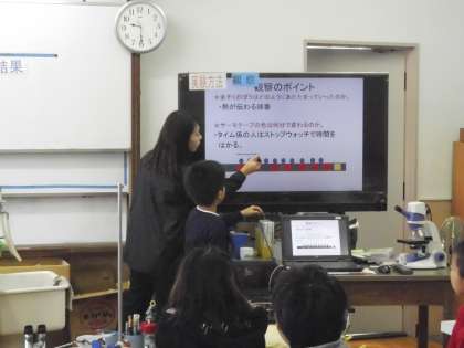 理科「もののあたたまり方」の実験です。各班で実験した結果をみんなで交流し,考えていきます。実験を通して,どのようにあたたまっていくのかよくわかりましたね。