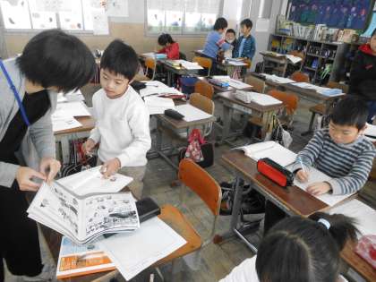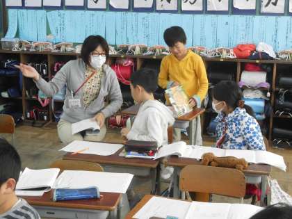 国語で「すがたを変える大豆」を学習しました。今度は,自分で選んだ食材がどのようなすがたに変わるか調べてまとめています。栄養指導の早田先生も応援に駆けつけてもらって,みんな一生懸命に調べていました。