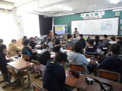 家庭科で食事のことについて学習している6年生。栄養指導の早田先生とは,カルシウムの必要性について一緒に考えました。