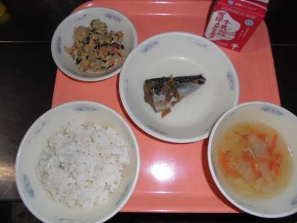 麦ごはん・牛乳・さばのしょうが煮・おから・はくさいの吉野汁