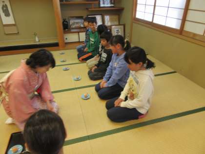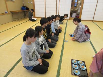 お茶の道具を使って入れられたお茶もいただきました。いただく際の作法についても,ていねいに教えていただきました。