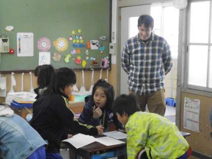 ALTのマシュー先生との学習です。「I like 〜.」元気よく友だちとやり取りをしていました。英語を話すことにまだ少し戸惑いもあるようですが,でも,みんな楽しそうでした。