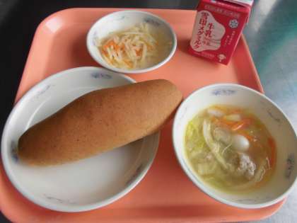 全粒粉パン・牛乳・肉だんごのスープ煮・じゃがいものピリカラいため