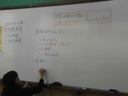 社会では疏水の学習をしています。疏水が完成したことで,京都の町の様子がどのように変化したのか,みんなで考えました。