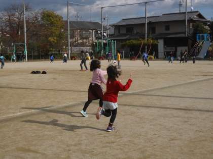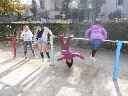 だいぶ冷え込みが厳しくなってきましたが,相変わらずみんな元気に外遊びです。体育の時間に学習した鉄棒にチャレンジしている人もいました。