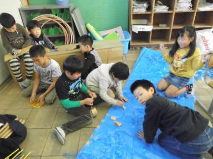 2年生は道具作りです。発表場面ごとに協力して作業を進めていました。みんな楽しそうです。