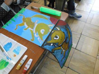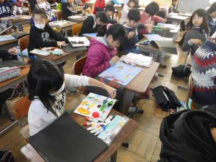 図工の版画では,これまで彫刻刀で彫り進めていましたが,いよいよ今度は刷りに入りました。絵の具の色をうまく混ぜ合わせながら,刷りを進めていきます。画用紙をめくるごとに,どんどん仕上がっていくのがわかるので,みんな楽しそうに取り組んでいます。