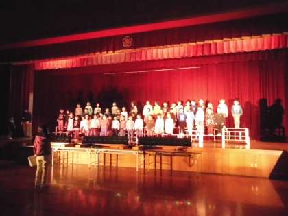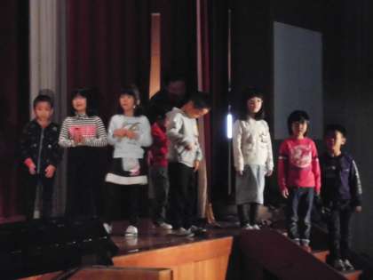学習発表会の練習,今日は体育館で練習です。広い体育館に自分の声を響かせるには,パワーが必要です。自分たちの発表がみんなに伝わるように,1年生なりに頑張っています。