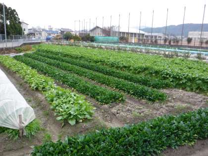 濱本先生の説明にうなる3年生のみんなです。8歳,9歳の子どもたちには想像もできない光景でしょう。そうして畑を眺めながら,一つ一つの作物を眺めていると,実に多くの種類の野菜が植わっていることが分かりました。キャベツ,ダイコン,ニンジン,かぶ,キュウリ,ネギ,などなど…。そして,なんと傍の売店ではレモンやトマトまで売っており,