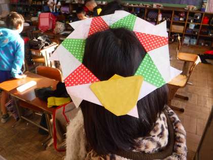 と,朝一番で見せてくれたのは,折り紙で作ったブーケでした。「天使の輪?」と問いかけると,