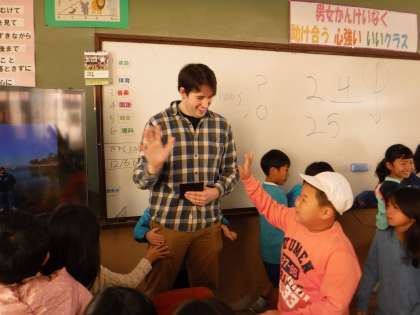 ALTのマシュー先生に自己紹介をしてもらいました。ずっとのびのびになっていた,スライドショーでの自己紹介。みんなマシュー先生のナンバーワンフードが,「からあげ」だとわかると大爆笑。ちなみにからあげはアメリカにはないそうです。