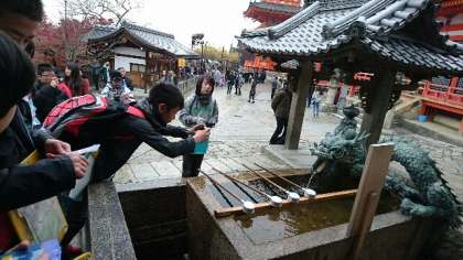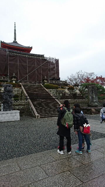 25班、清水寺到着。観光客や修学旅行生が多過ぎて、バスからの道が大変だったそうです。アングルにこだわって、写真撮影しています。「次は、桜の季節に来たい〜。」とのつぶやきも・・・。