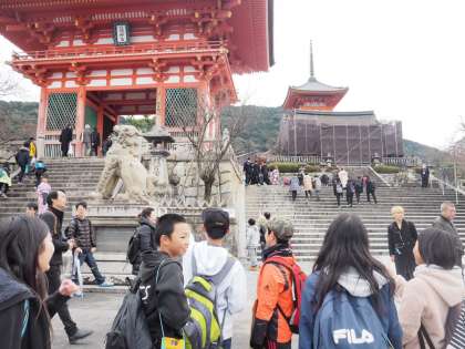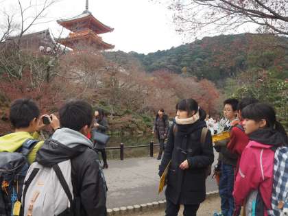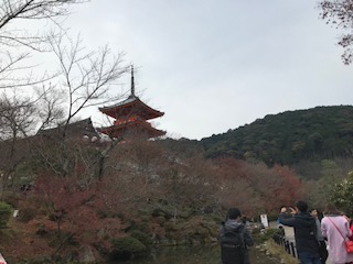 午後からの清水寺組です。少し予定よりも遅れている班もありましたが、何とか到着して拝観しに行きました。紅葉はもう散り気味で、残念がっていました。