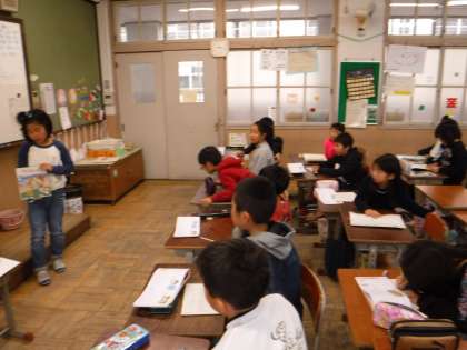 と,朝教室で手渡してくれたのは,絵本でした。ただの絵本ではなく,いま国語科で学習している「三年とうげ」の絵本版でした。早速読み聞かせをしてみると,「三年とうげで歌を歌ったのはトルトリだった!」「教科書とは挿絵がちがう」など,色々な気づきがありました。持って来てくれた子,持たせてくれたお家の方に感謝です。学習では,三年とうげの情景描写から,意見を交わしながら読みを深めています。自分たちの意見だけで1時間の学習が成立します。子どもたちの発言力の高まりを感じます。