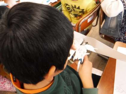 図画工作科では,版画の版の制作にとりかかっています。なかなか細かい作業ですが,地道に切り貼りを繰り返し,思い描いた作品になるように頑張っています。