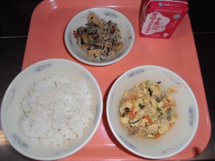 胚芽米ごはん・牛乳・親子煮・いためなます