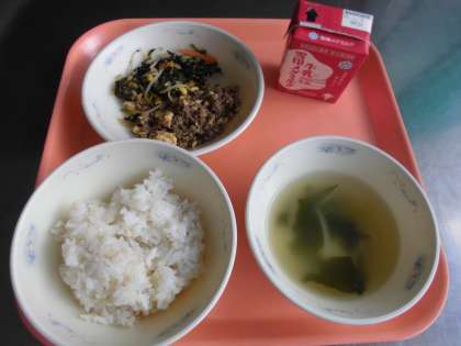 子どもたちから、「『ビビンバ』も、とっても美味しかったし、『わかめスープ』も、玉ねぎとわかめ・トックが入っていて、美味しかったです。」と、感想をくれました。