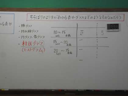 最終的に,どのような表やグラフにすればいいか,みんなでまとめていきます。グラフも,棒グラフや帯グラフ,円グラフなどいろいろな種類があることがわかりました。
