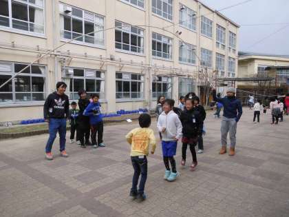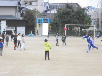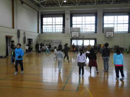 運動場や中庭では,寒風が吹く中,たてわりグループで元気に遊びました。体育館でも白熱したドッヂボールが行われていました。