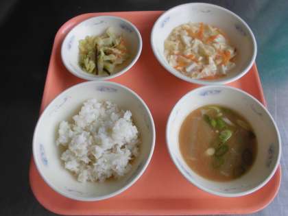 『九条ねぎのみそ汁』は、京野菜の九条ねぎと油揚げ・大根・えのきだけの入ったみそ汁で、九条ねぎと京北みそを使った「地産地消」の献立です。